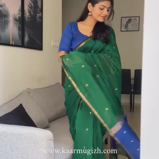 Presenting our beautiful soft silk cotton handloom saree green and blue hue. Comes with running blouse fabric