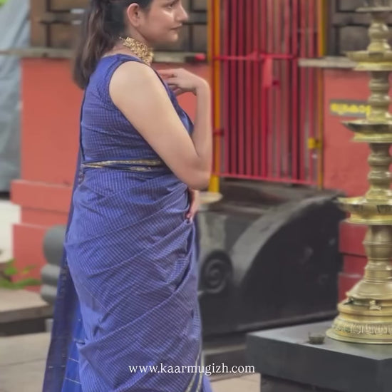 A beautiful, richly colored soft silk cotton handloom sarees with border and intricate checks golden weaving. This elegant saree comes with matching blouse fabric.