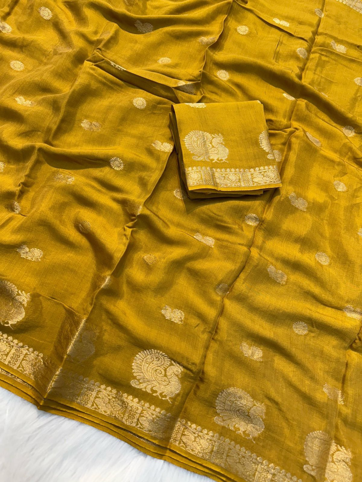 Draped in grace and steeped in heritage, Mayurika is a viscose saree adorned with golden Annapakshi and ruthracham motifs — a symbol of purity and prosperity.